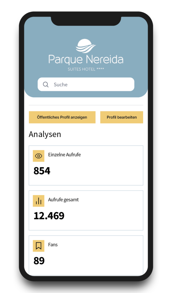 Su panel personal le muestra qué contenido les interesa a sus huéspedes y cómo usan la aplicación, de forma anónima y de conformidad con el RGPD.